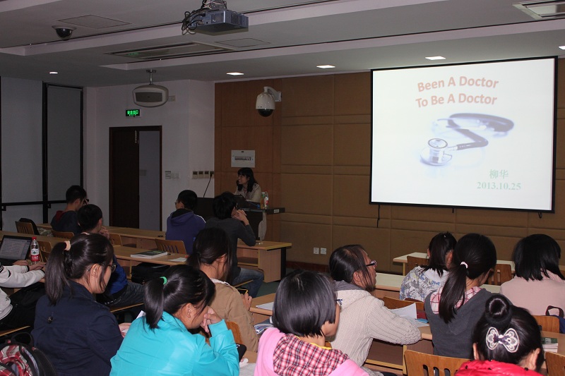 201310251830分,同学们共聚医学部综合楼307,聆听了由柳华老师主讲的“行医之路”专题讲座。