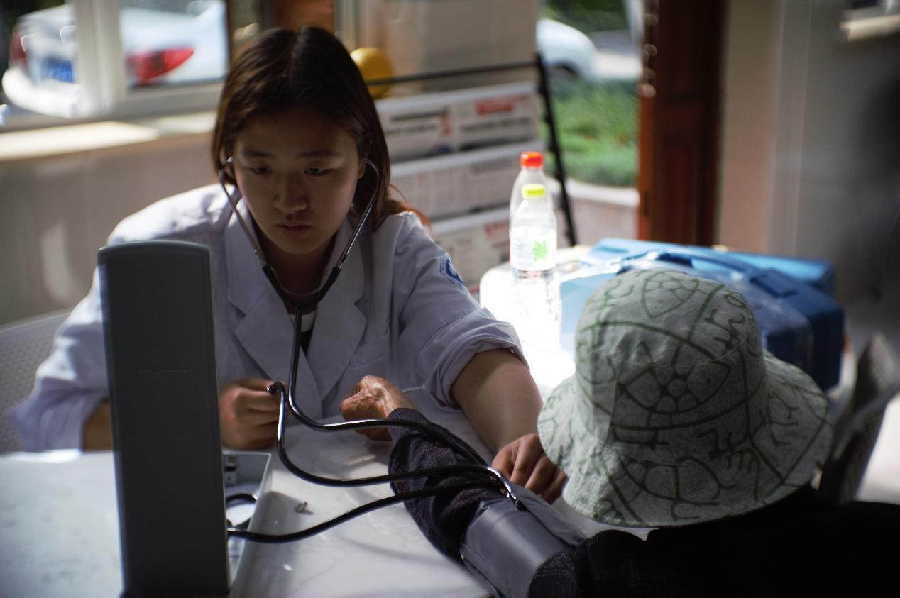 周五的下午,社区里活动着较多老年人。三月中旬我们团支部第一次来到这里的时候,志愿服务工作点很快就被爷爷奶奶们围了起来,咨询健康知识、接受免费量血压服务的人群络绎不绝。第一期活动得到了社区工作人员和居民的好评,对社区实际情况进行考察后,团支部第二期敬老爱老志愿者活动计划便于一个月后行动了起来。