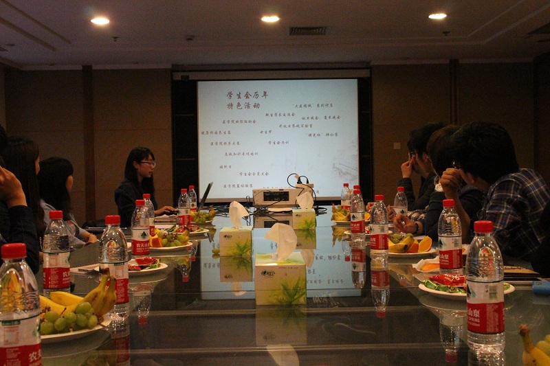 参观最后,我们回到了医学院,参观了临床技能实践培训教室后,交流会也在会议室拉开了帷幕。相比上次交大医学院同学来访的交流,这次的交流会气氛更为温馨,弥漫着一股熟悉的味道。在双方都做了大致的医学院以及学生会的相关介绍之后,大家展开了热烈的交流讨论。讨论的主题涵盖了双方学生会的活动,医学院招生情况,教学安排情况,在交流过程中也不自觉地进行着双向的比较和学习。如果说上次交流会是一杯火热的红酒,引燃了双方的热情;那么这次细致的交流则是一盏香茗,带给我们更多的是思考和回味。