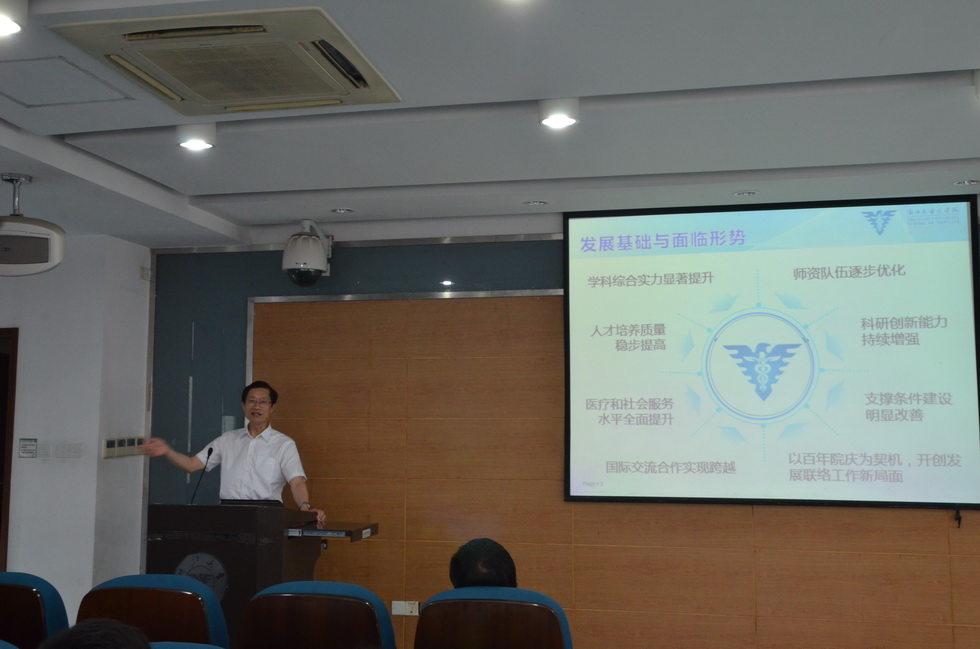 陈智同志指出虽然我们有了很大的进步,但依然有很大的发展空间,存在着需要改善和提升的问题,如学科总体发展水平还需提高,核心竞争力不足;生物医学特别是基础研究模块规模偏小;基础、公共卫生与临床学科结合缺乏有效的机制和推进措施;科研产出质量有待提高;教学重视不够,教师队伍还需加强等存在问题。