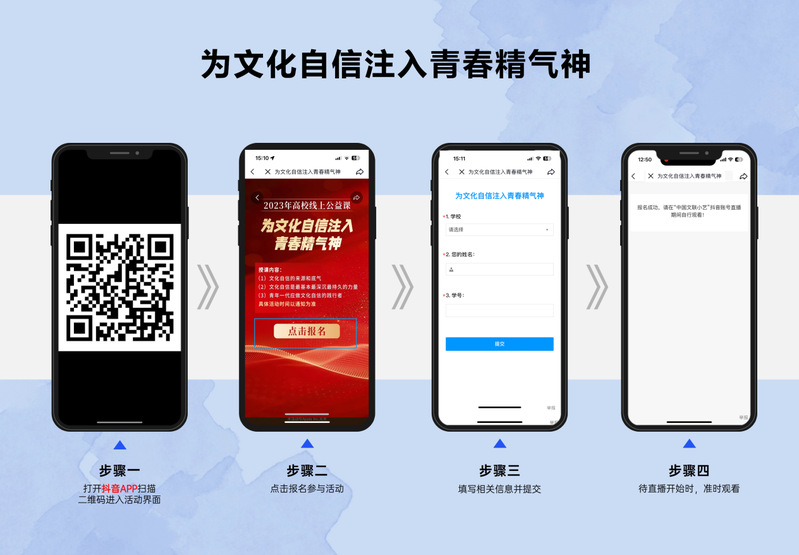 本次课程时间为2023年12月26日19:30。参与直播课程的学生,请同学们使用抖音最新版APP扫描课程二维码进行报名。扫描课程二维码报名前请先登录个人账号,完成报名。